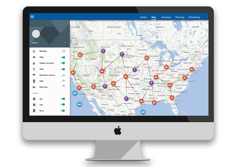 The Supply Chain Visualization (SCV) project aimed to transform Aspen’s inventory management and operations scheduling application (IMOS) by introducing a modern, map-centric UI. While IMOS was a powerful tool for petroleum supply chain specialists, its reliance on spreadsheets often left users overwhelmed and struggling to utilize their data effectively. Common feedback described the experience as "getting lost in the spreadsheets." SCV addressed this challenge by providing an intuitive, end-to-end visualization of petroleum products—ranging from unprocessed crude oil to unleaded gasoline—within the supply chain. This allowed users to quickly identify optimization opportunities without sifting through endless spreadsheet data.